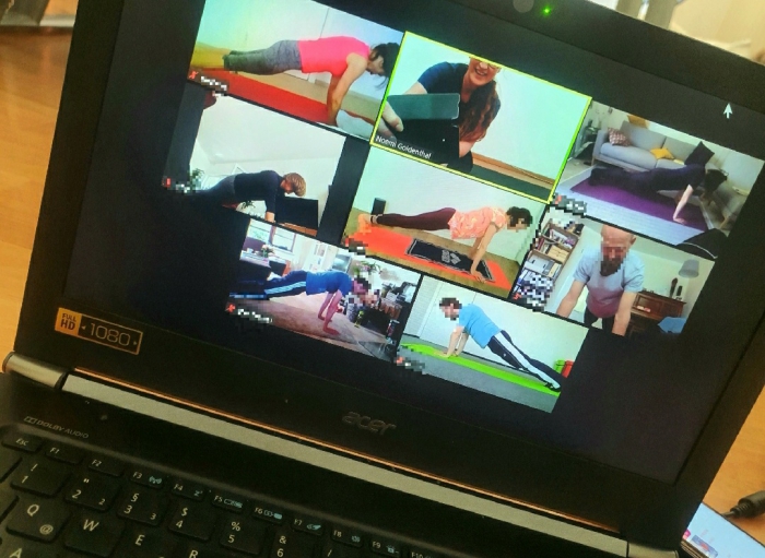 Firmenfitness bei Homeoffice durch Online Training. Auch über Internet ist gesundheitsorientierte Bewegung, individuelle Korrektur und Spaß möglich.