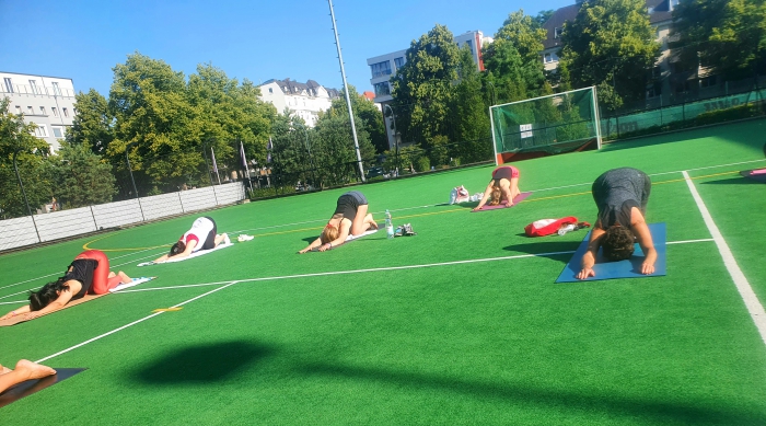 So ein schönes Wetter sollte man nutzen, um da Training nach draußen zu verlagern, zB Pilates.