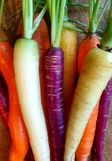 Karotten haben einen sehr hohen Carotingehalt, der für die Sehfähigkeit, auch in der Nacht verantwortlich ist. Es kann durch die Zugabe von Fett, durch Zerkleinerung und durch Kochen besonders gut vom Körper aufgenommen. Karotten beinhalten die Vitamine B6, B1, B2, C und E, die Mineralstoffen Kalium, Phosphor und Kalzium und sind sehr kalorienarm (26 kcal). Rohe Karotten sättigen mehr als gekochte.