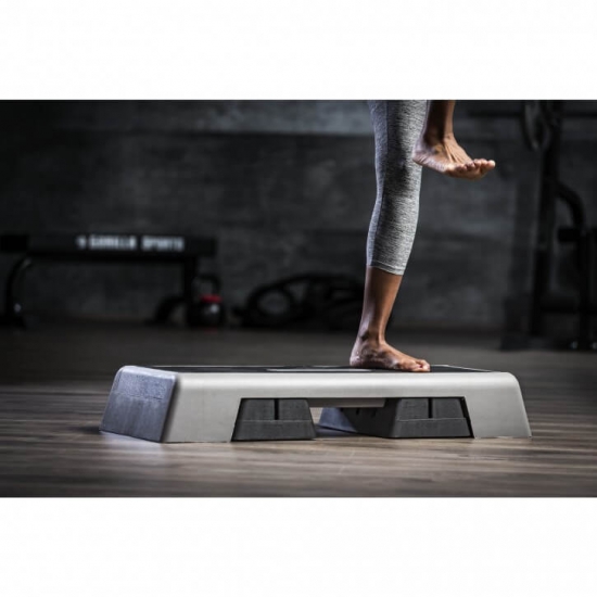 Ausfallschrittkniebeugen oder Squats, bei denen ein Fuß auf dem Step steht steigern die Intensität umso mehr, je höher es eingestellt wird, da somit der Bewegungsradius vergrößert ist.